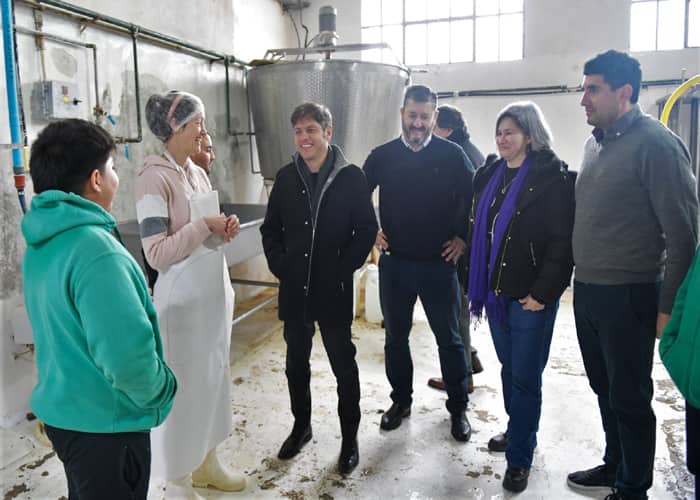 El gobernador de la provincia de Buenos Aires, Axel Kicillof, recorrió este viernes la fábrica láctea de la Escuela Secundaria Agraria N°1 de Colonia Ancalo, en el municipio de Florentino Ameghino. Allí, junto al director general de Cultura y Educación, Alberto Sileoni, y el director provincial de Educación Agraria, Gerardo Berchi, puso en funcionamiento un nuevo tractor para la institución.