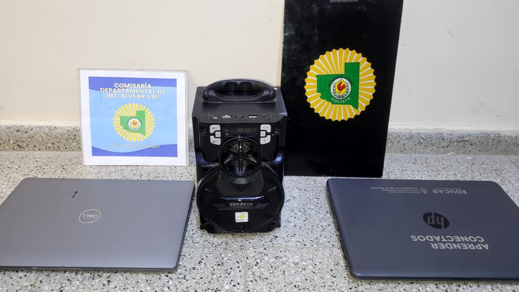 En horas de la tarde del domingo pasado, se dio aviso a la comisaría de Alvear, sobre un robo en el J.I.N. Nº 16 de la escuela 196 de esta localidad, dónde directivos denunciaron la sustracción de dos notebooks, un parlante portátil y varios packs de rollos de papel higiénico y de cocina.